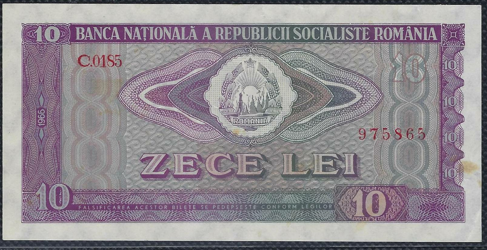 ROUMANIE 10 LEI 1966 Série C.0185 TTB+ (W94a)