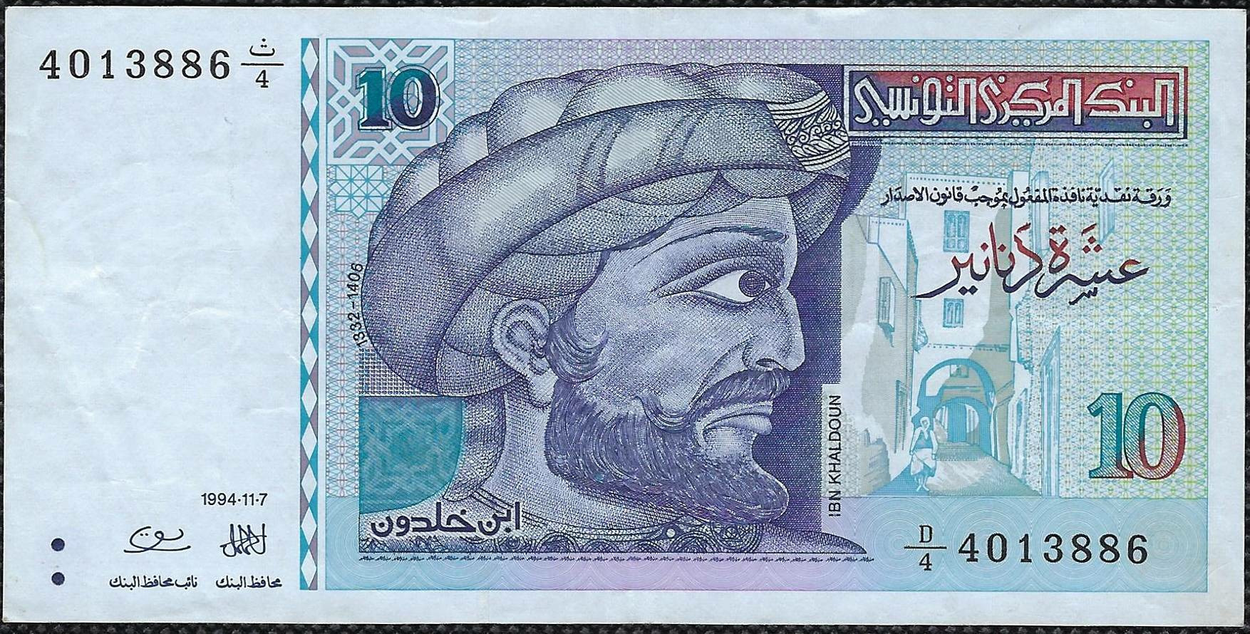 TUNISIE 10 DINARS 7-11-1994 SERIE D4 TTB+ W87