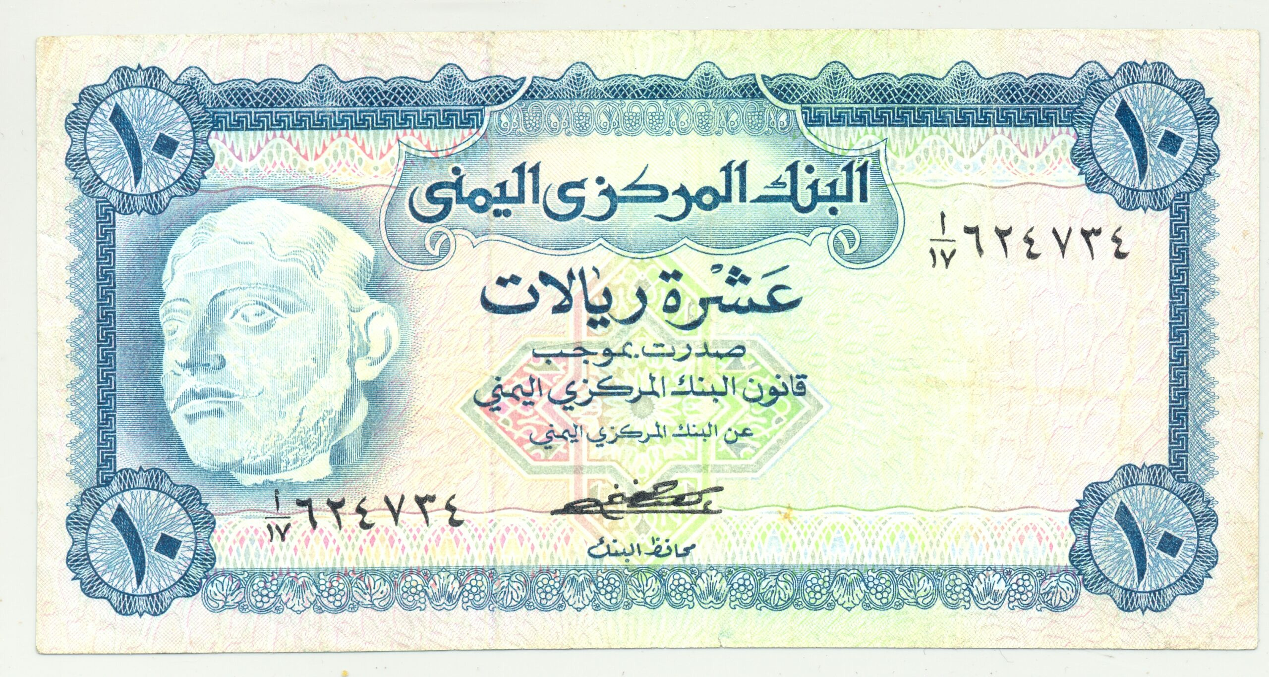 YEMEN 10 RIALS ND (1973) SIGNATURE 5 TTB (W13a)