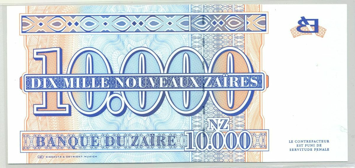 ZAIRE 10000 NOUVEAUX ZAIRES 30-01-1995 SERIE E NEUF (W70a)