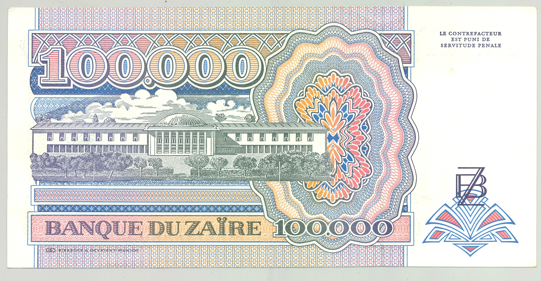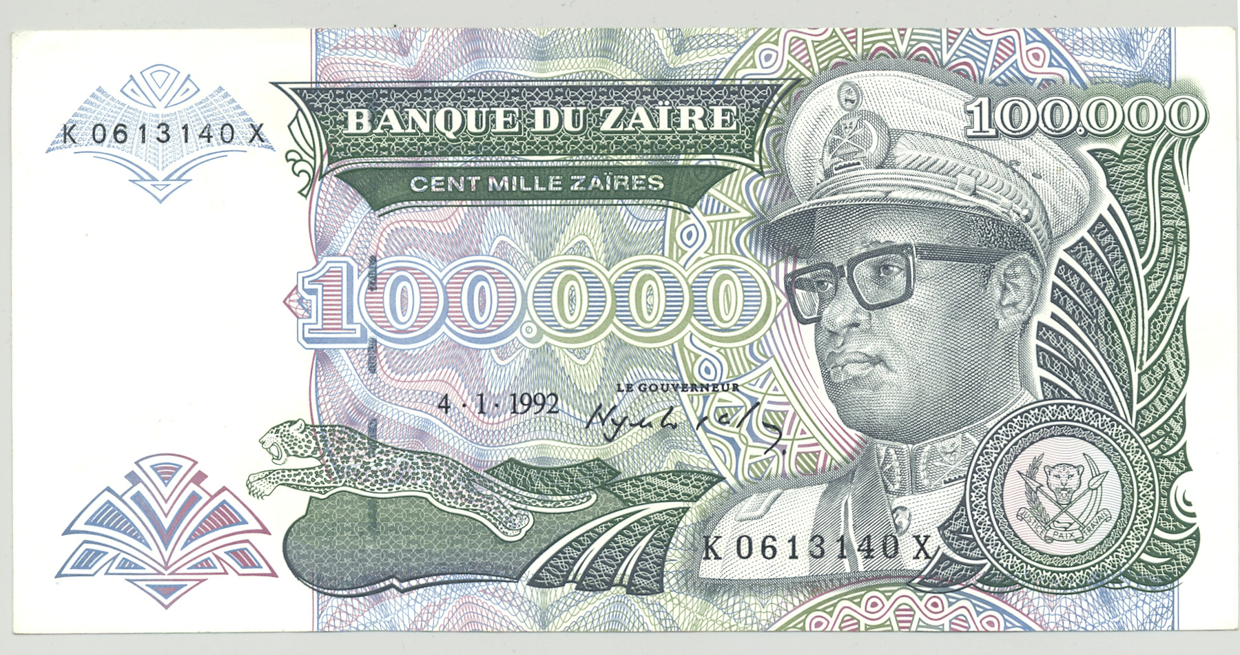 ZAIRE 100000 ZAIRES 04-01-1992 SERIE K SPL (W41a)