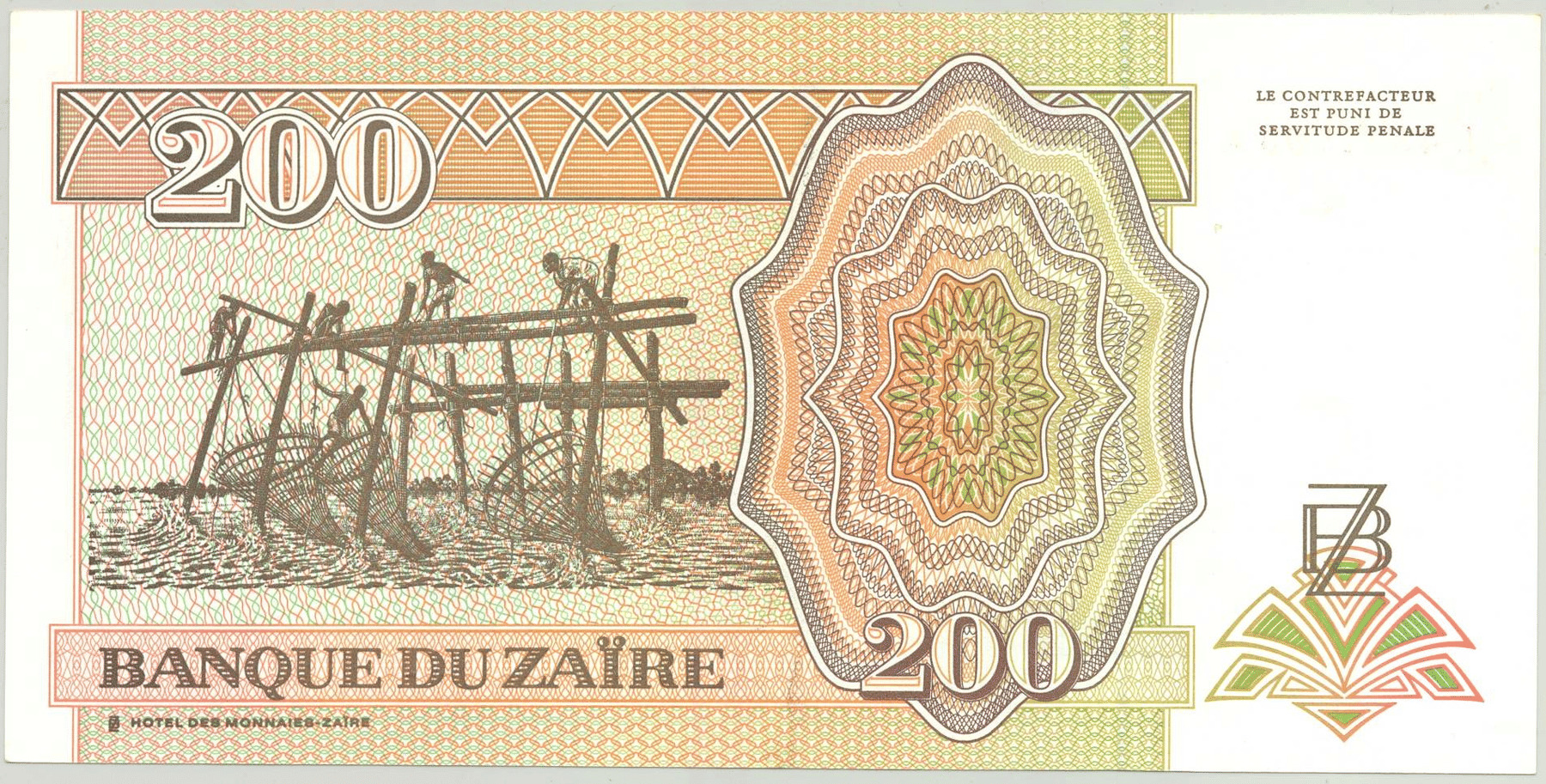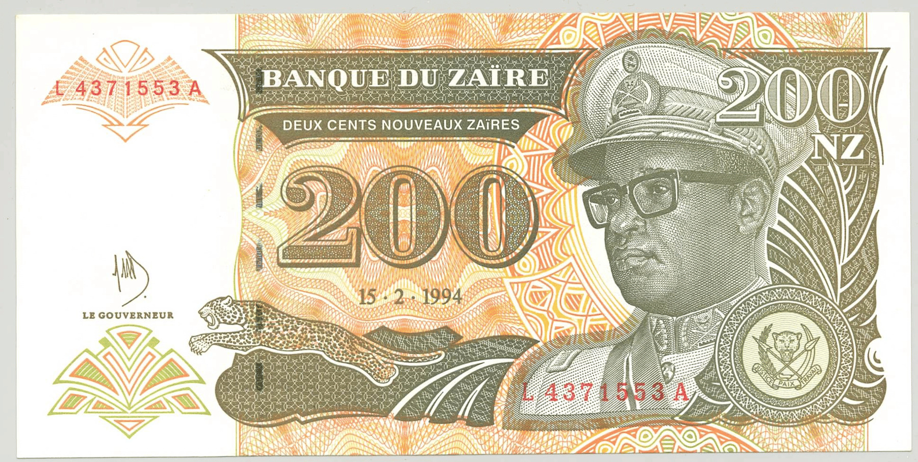 ZAIRE 200 NOUVEAUX ZAIRES 15-02-1994 SERIE L SPL (W61)
