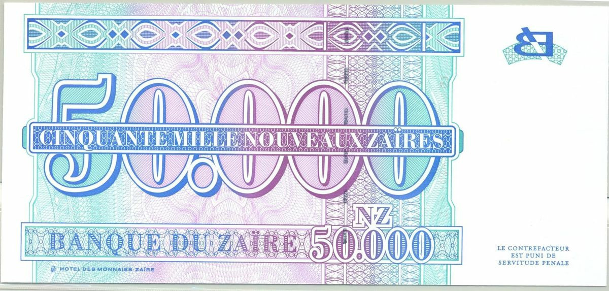 ZAIRE 50000 NOUVEAUX ZAIRES 30-01-1996 SERIE G NEUF (W75)