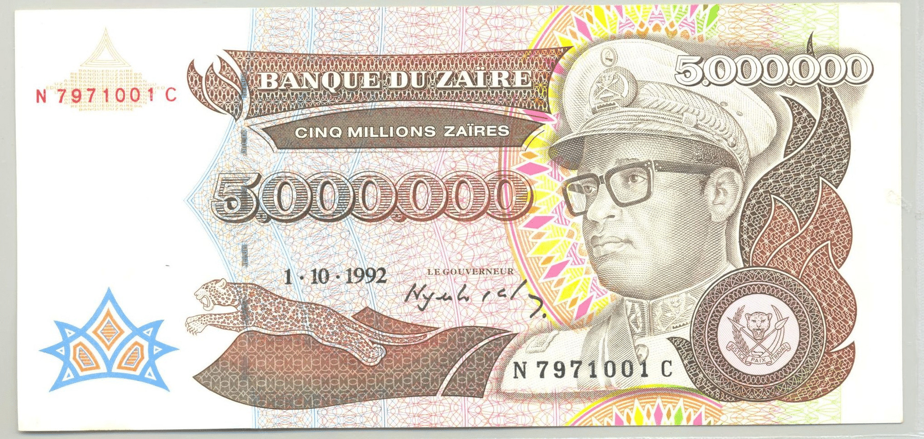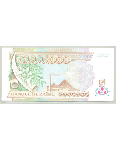 ZAIRE 5000000 (5 millions) ZAIRES 01-10-1992 SERIE N SPL (W46a)