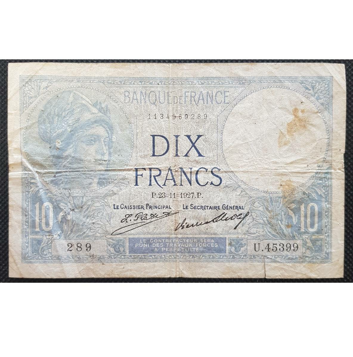 FRANCE 10 FRANCS MINERVE 23-11-1927 SERIE U.45399