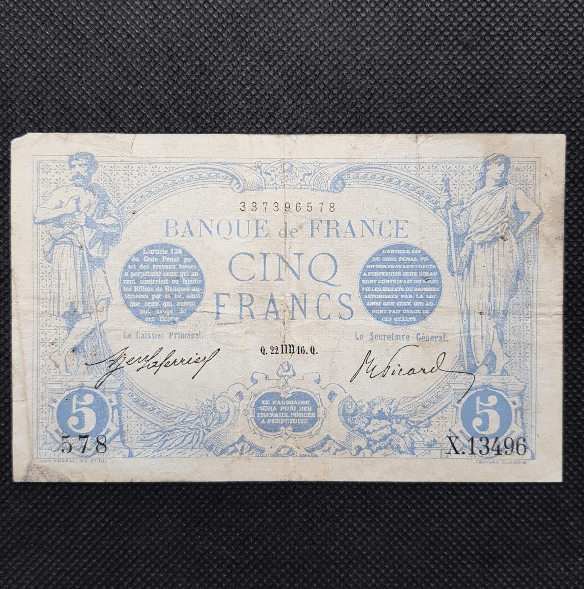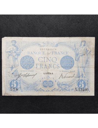 FRANCE 5 FRANCS BLEU 22 AOUT 1916 X.13496 TB+
