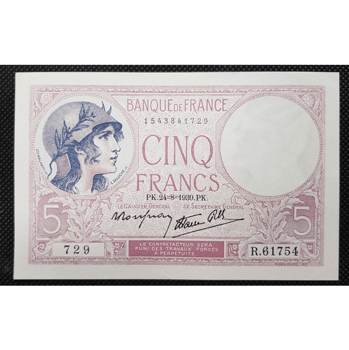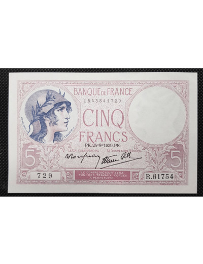 FRANCE 5 FRANCS VIOLET 24-8-1939 R.61754