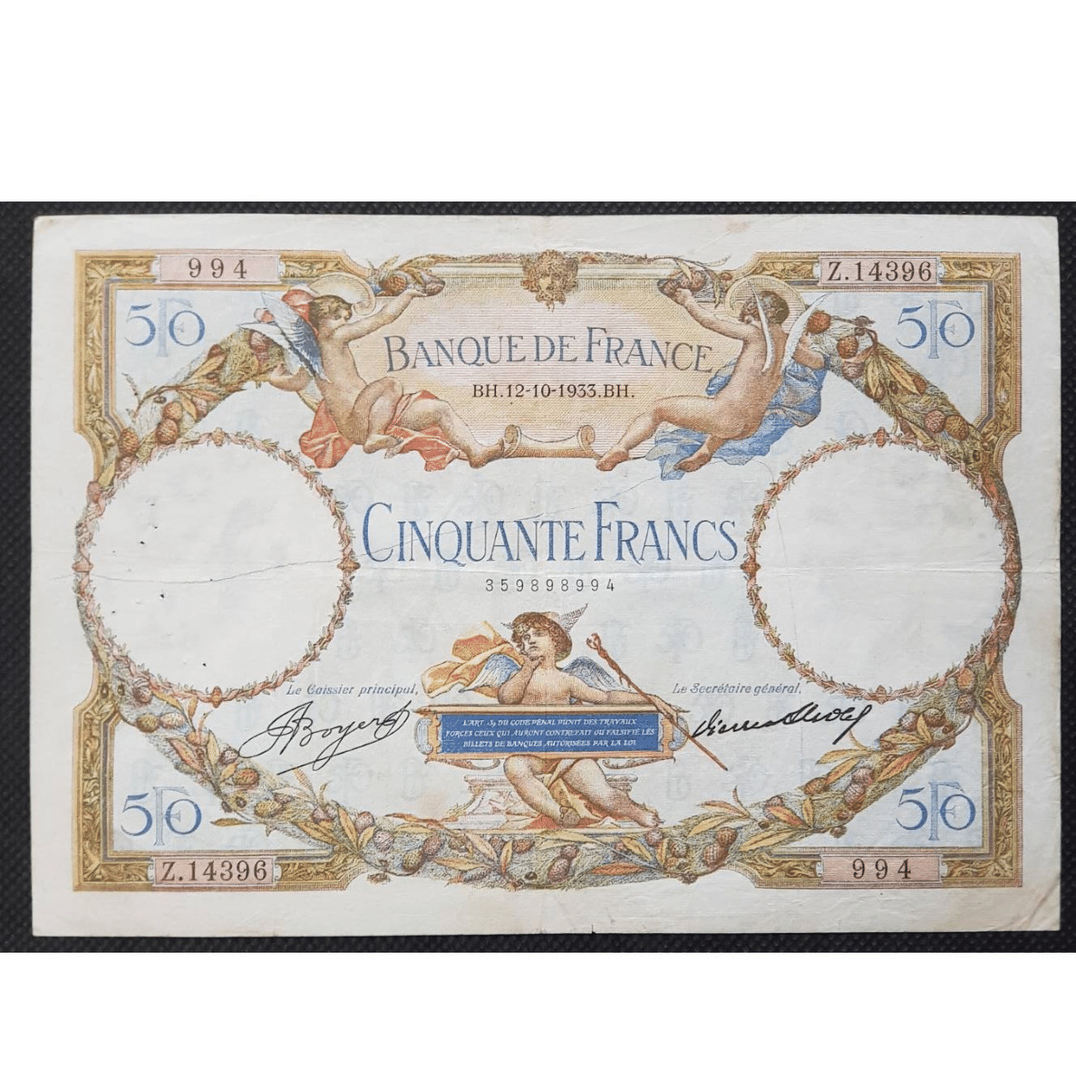 FRANCE 50 FRANCS L.O. MERSON 12-10-1933 Z.14396