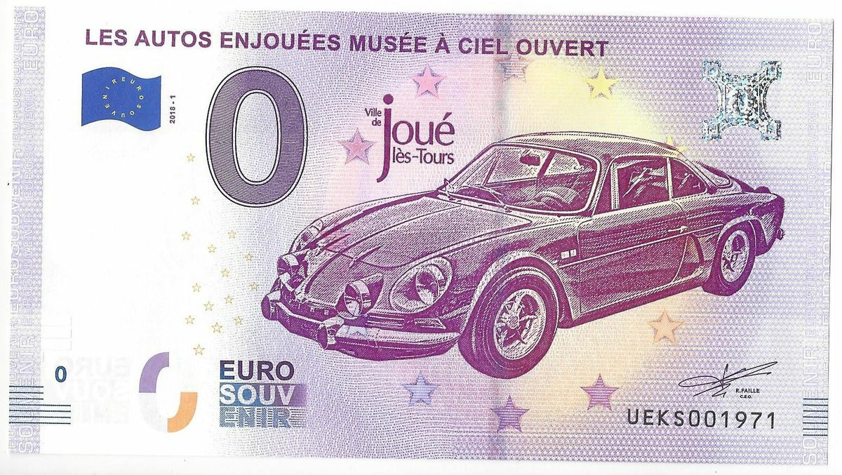 37 JOUE LES TOURS 2018-1 ANNEE ALPINE A110 BERLINETTE BILLET SOUVENIR 0 EURO NEUF