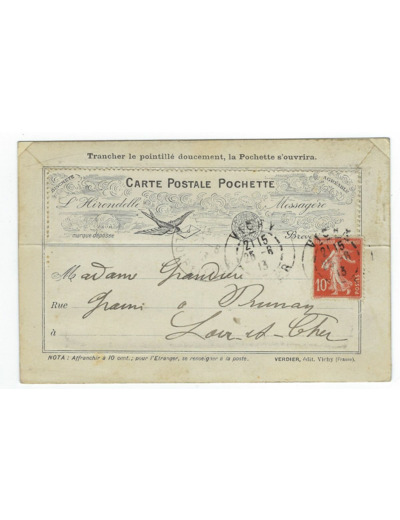 03 VICHY LES SERRES. LES CYGNES 25 06 1913 CARTE POSTALE POCHETTE