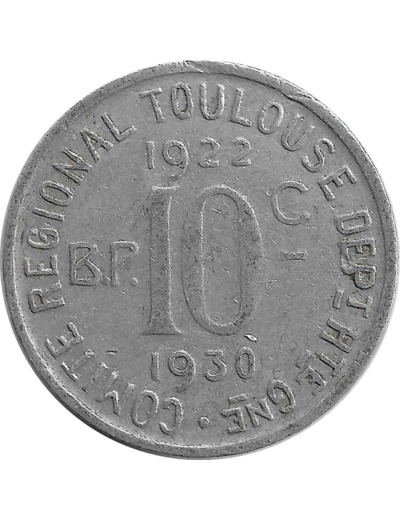 31 HAUTE GARONNE - TOULOUSE 10 CENTIMES 1922 1930 TTB