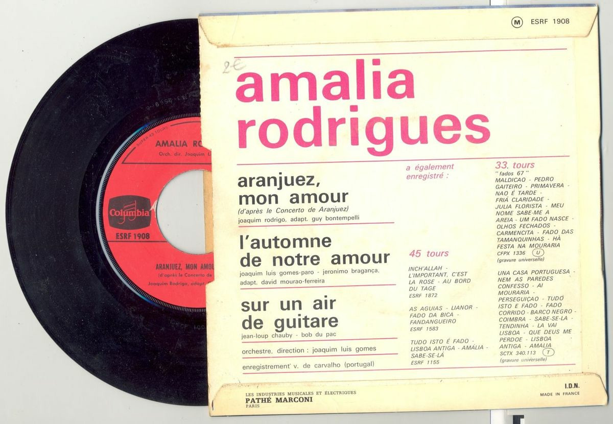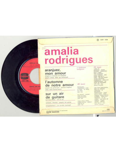 45 Tours AMALIA RODRIGUEZ "L'AUTOMNE DE NOTRE AMOUR" / "ARANJUEZ MON AMOUR"