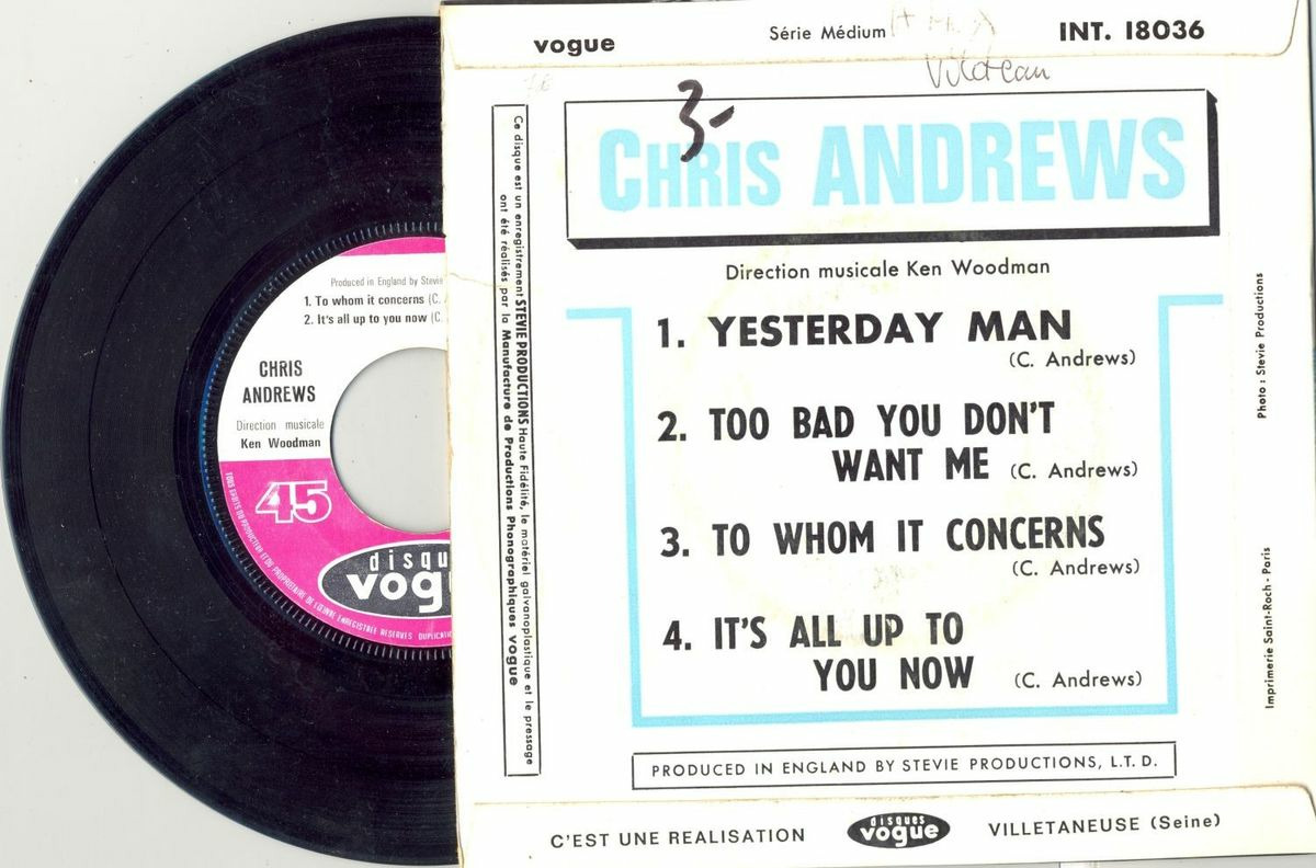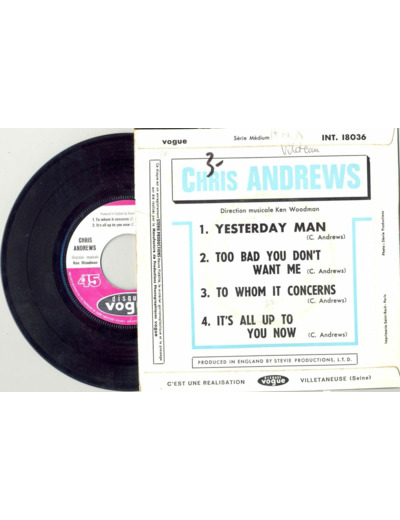 45 Tours CHRIS ANDREWS "YESTERDAY MAN" / "TO WHOM IT CONCERNS"