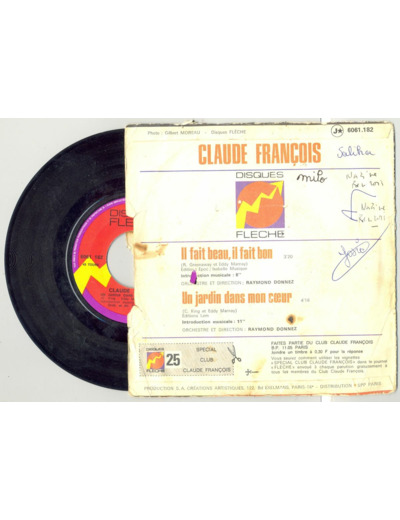 45 Tours CLAUDE FRANCOIS "IL FAIT BEAU IL FAIT BON" / "UN JARDIN DANS MON COEUR"