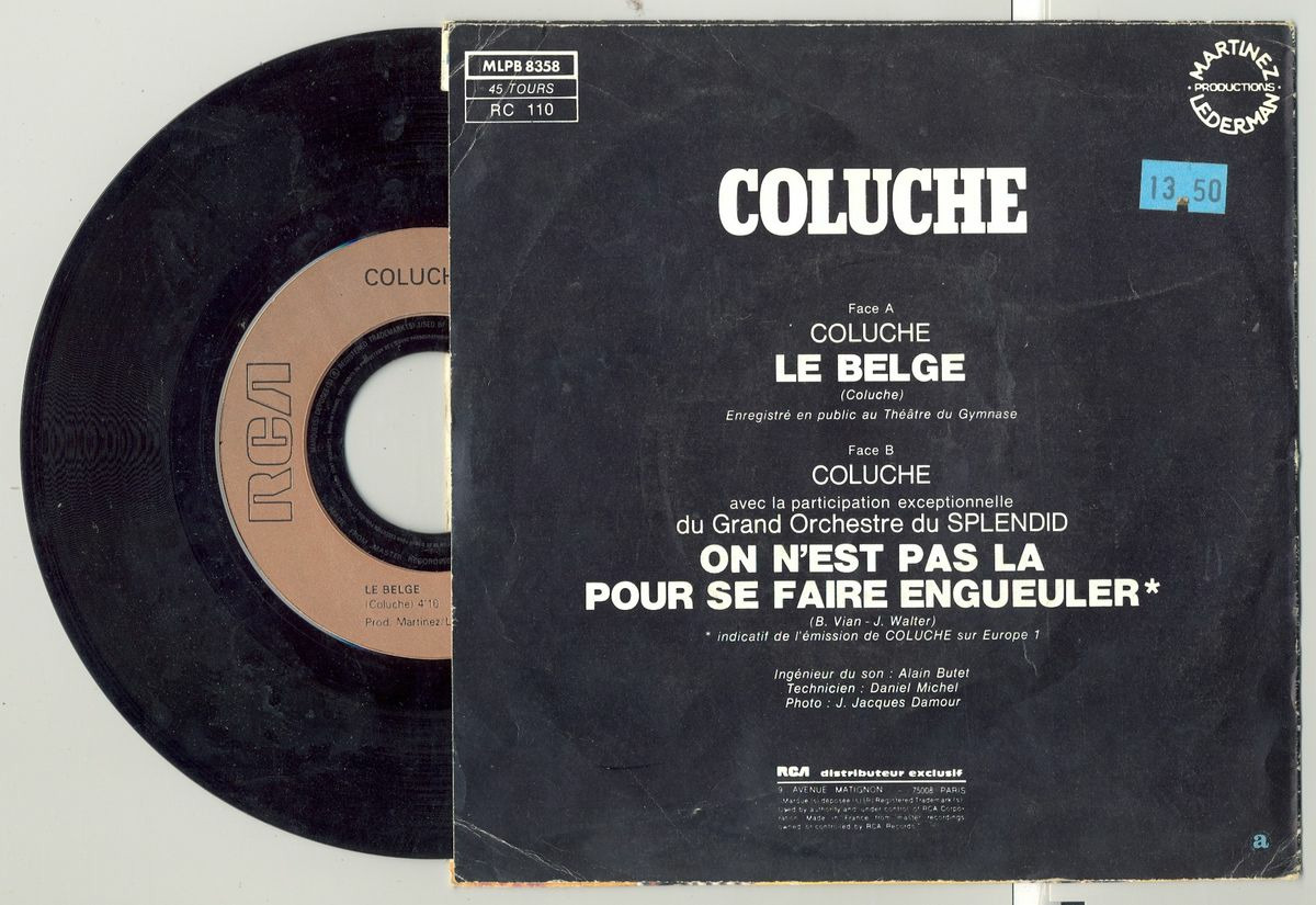 45 Tours COLUCHE "LE BELGE" / "ON N'EST PAS LA POUR SE FAIRE ENGUEULER"