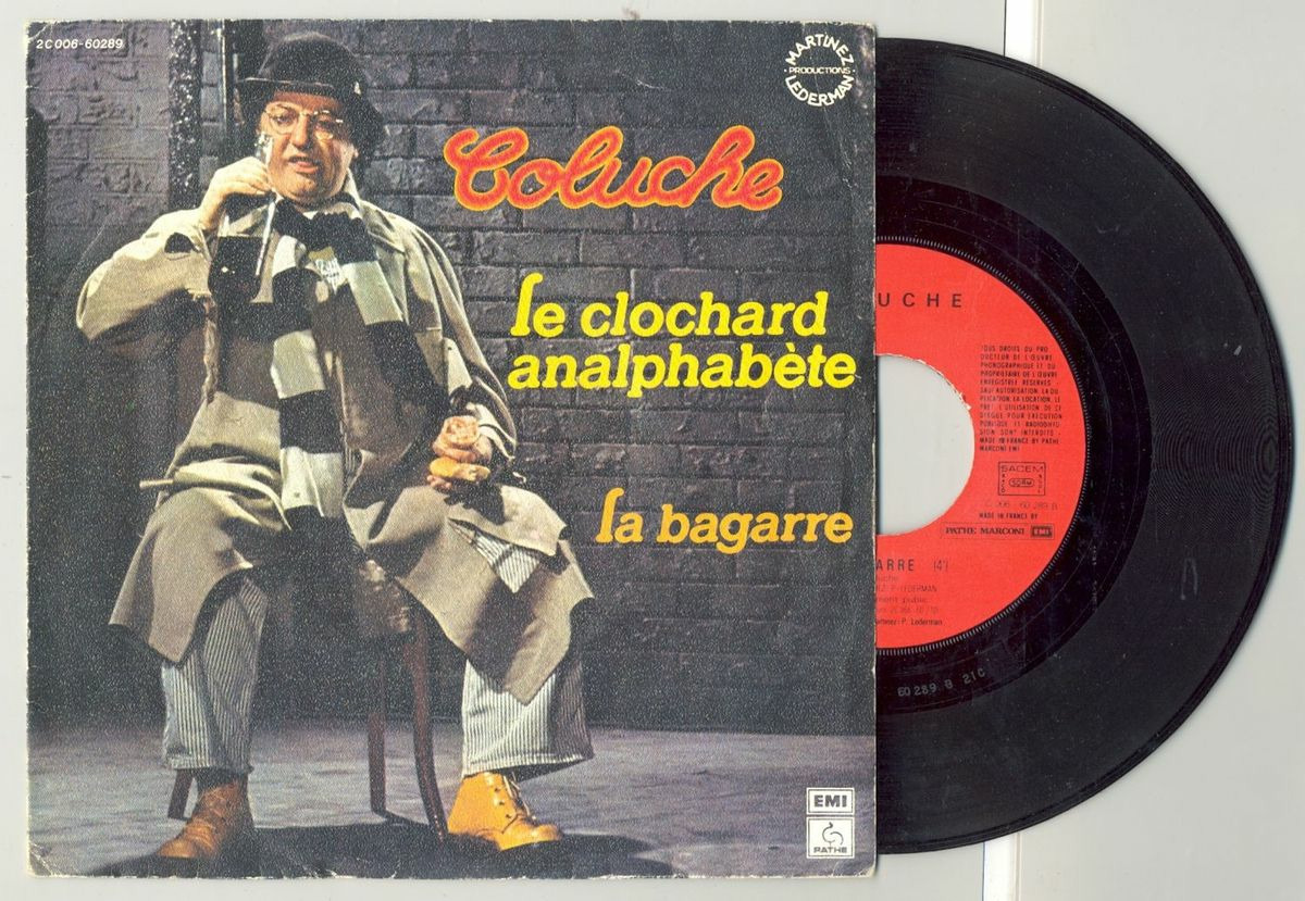 45 Tours COLUCHE "LE CLOCHARD ANALPHABETE" / "LA BAGARRE"