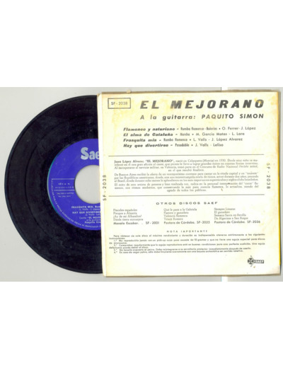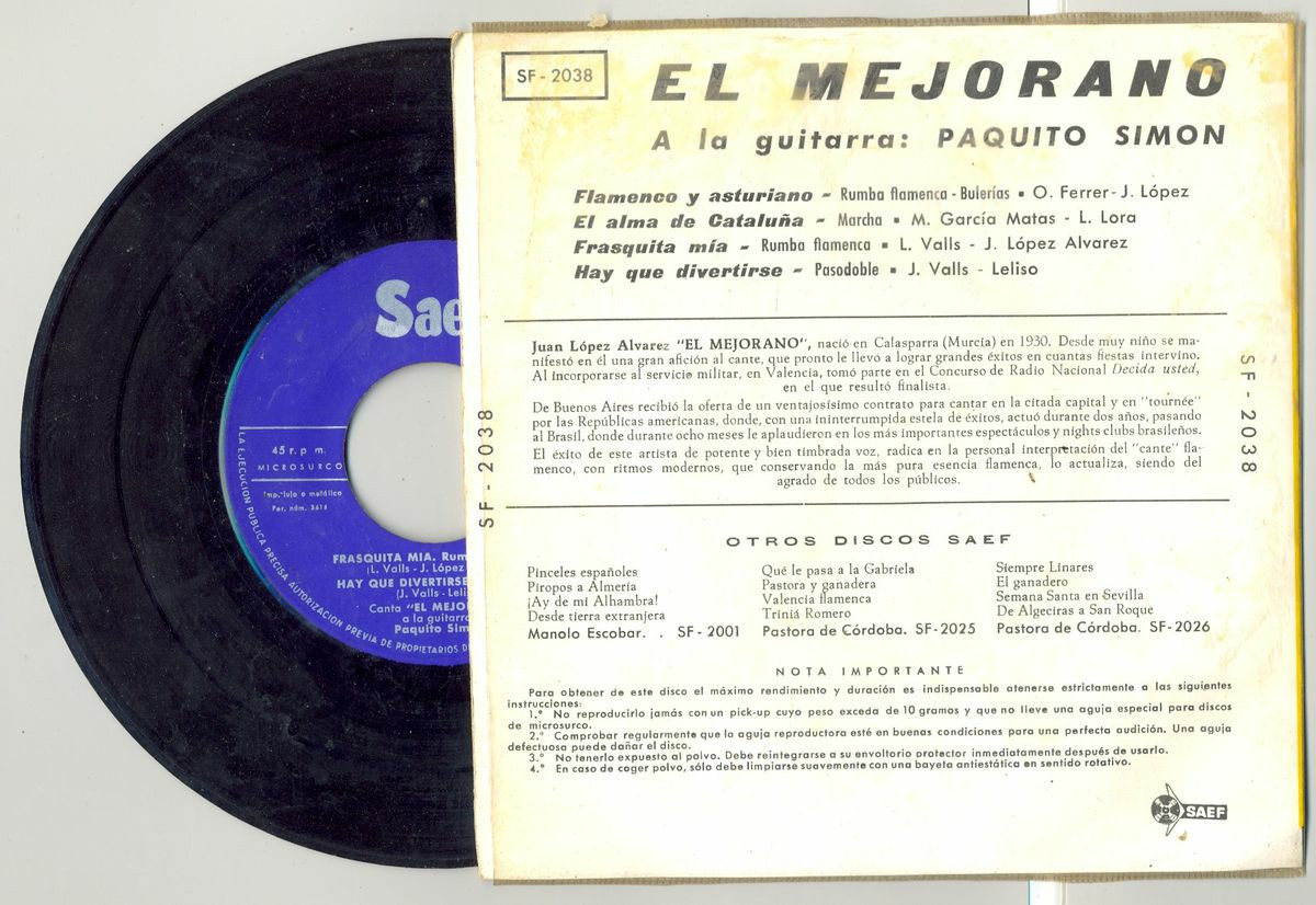 45 Tours EL MEJORANO "FLAMENCO Y ASTURIANO" / "FRASQUITA MIA"
