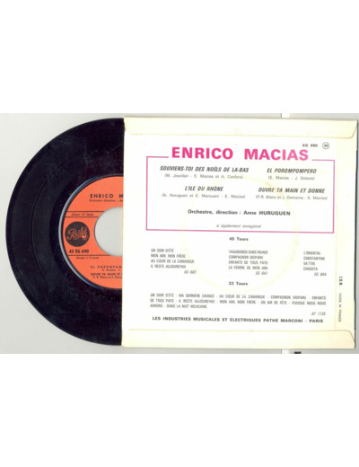 45 Tours ENRICO MACIAS "EL PROMPOMPERO" / "SOUVIENS TOI DES NOELS DE LA BAS"