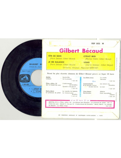 45 Tours GILBERT BECAUD "TETE DE BOIS" / "C'ETAIT MOI"
