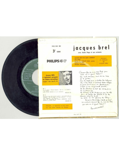 45 Tours JACQUES BREL "QUAND ON N'A QUE L'AMOUR" / "SAINT PIERRE"