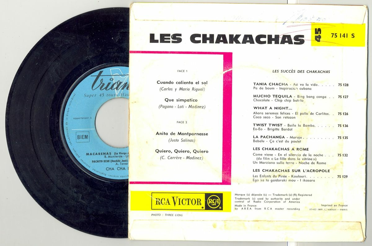 45 Tours LES CHAKACHAS "CUANDO CALIENTA EL SOL" / "ANITA DE MONTPARNASSE"