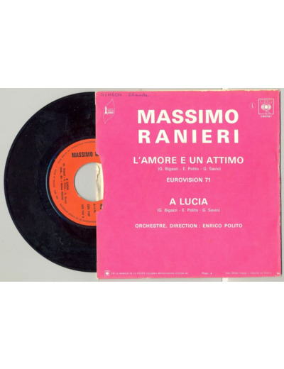 45 Tours MASSIMO RANIERI "A LUCIA" / "L'AMORE E UN ATTIMO"
