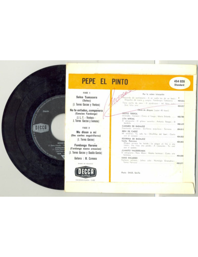 45 Tours PEPE EL PINTO "SOLEA TOMASERA" / "ME DICEN A MI"