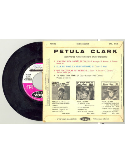 45 Tours PETULA CLARK "QUE TON COEUR ME SOIT FIDELE" / "JE ME SENS BIEN"