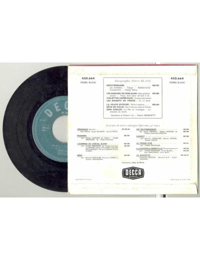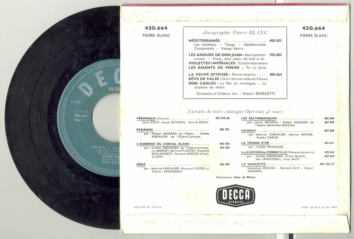 45 Tours PIERRE BLANC "LA VEUVE JOYEUSE" / "DON CARLOS"