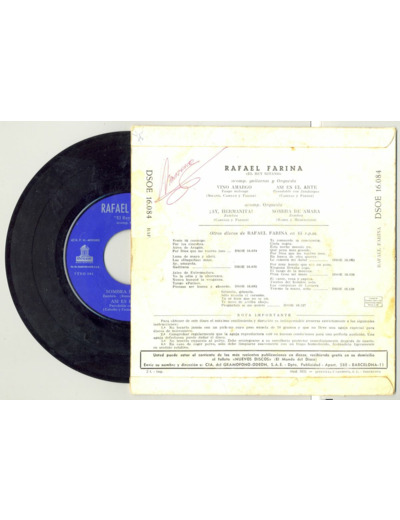 45 Tours RAFAEL FARINA "VINO AMERGO" / "SOMBRA DE AMARA"