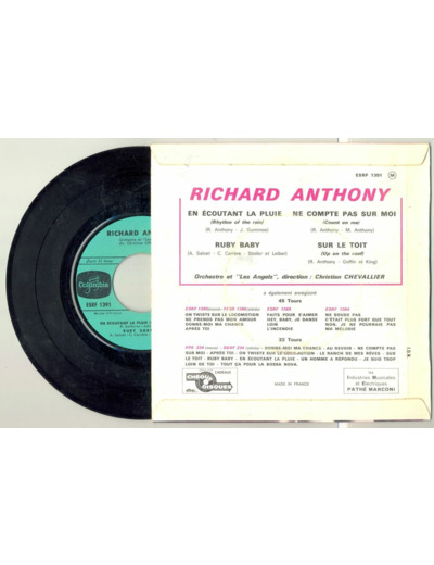 45 Tours RICHARD ANTHONY "EN ECOUTANT LA PLUIE" / "NE COMPTE PAS SUR MOI"
