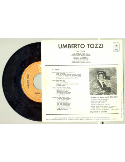 45 Tours UMBERTO TOZZI "GLORIA / "MAMA MAREMMA" pressage ESPAGNE