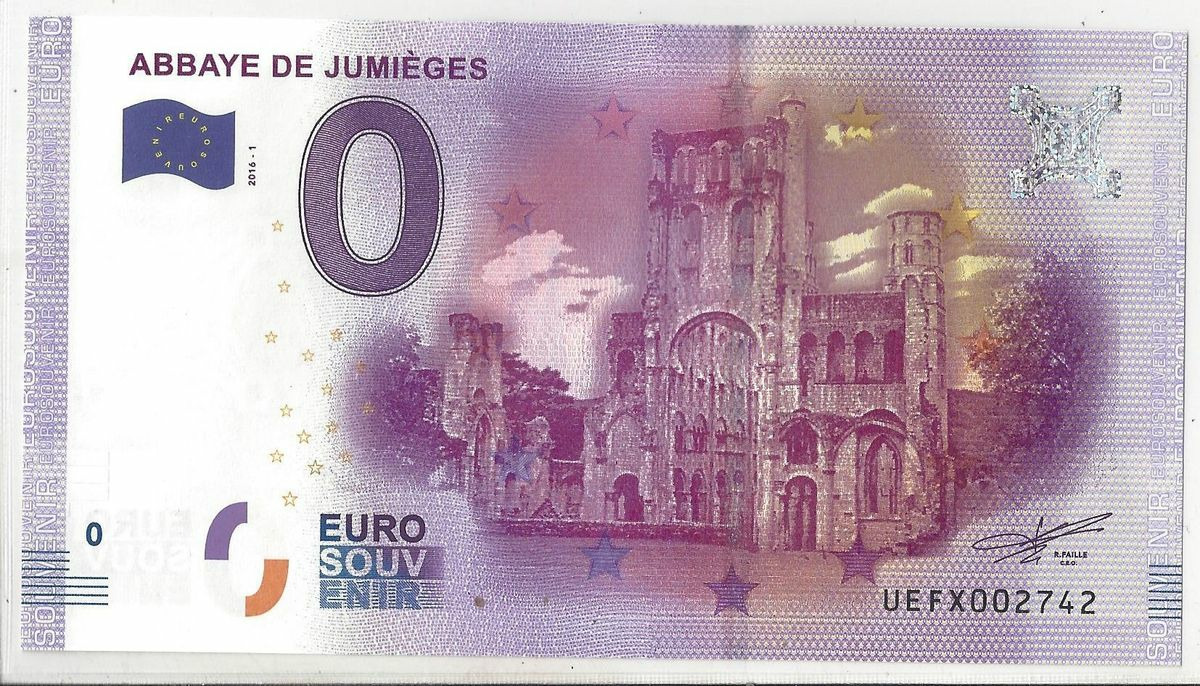 76 JUMIEGES ABBAYE DE JUMIEGES BILLET SOUVENIR 0EURO TOURISTIQUE 2016-1 NEUF
