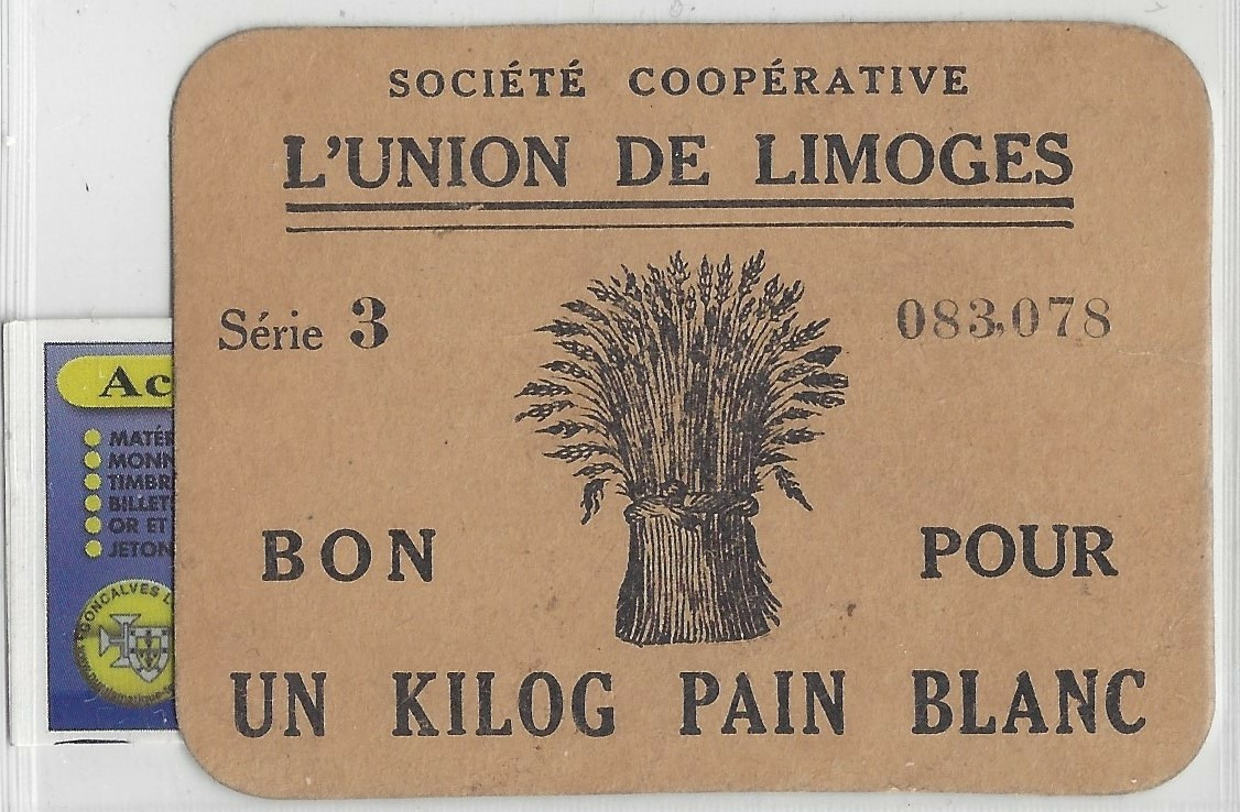 87 HAUTE VIENNE L'UNION DE LIMOGES SOCIETE COOPERATIVE BON POUR 1 KILOG DE PAIN