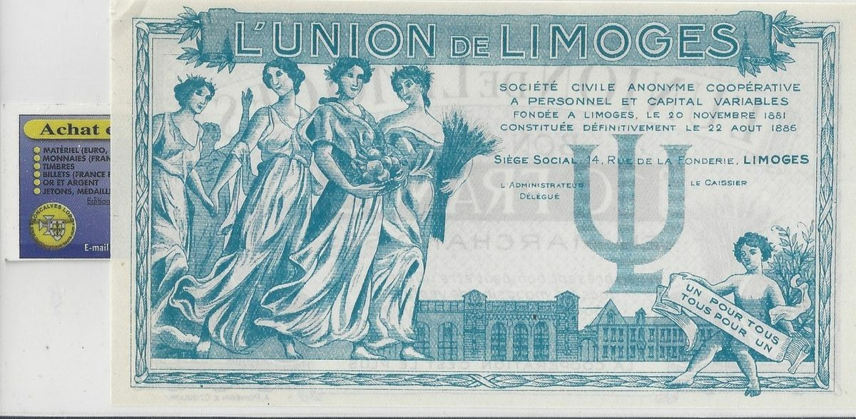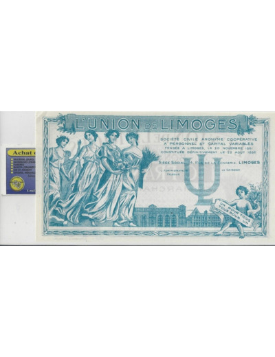 87 HAUTE VIENNE L'UNION DE LIMOGES BON POUR 10 Francs EN MARCHANDISE