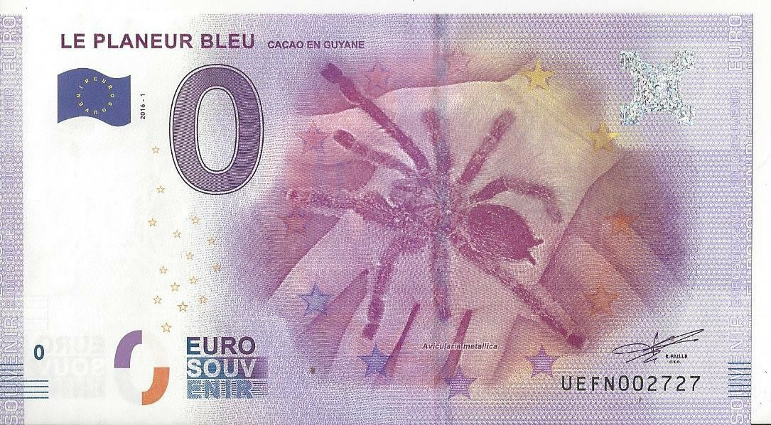 973 GUYANE LE PLANEUR BLEU BILLET SOUVENIR Numero 2727 0 EURO TOURISTIQUE 2016-1 NEUF