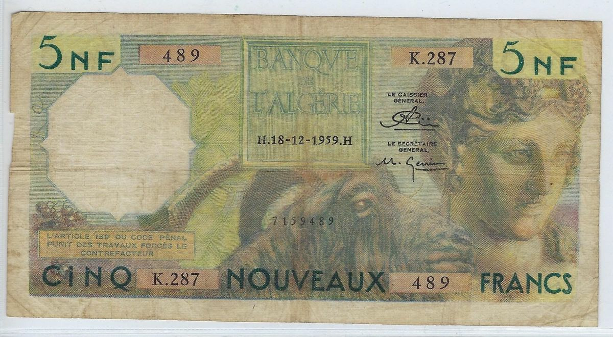 ALGERIE 5 NOUVEAUX FRANCS 18-12-1959 K.287 TB+