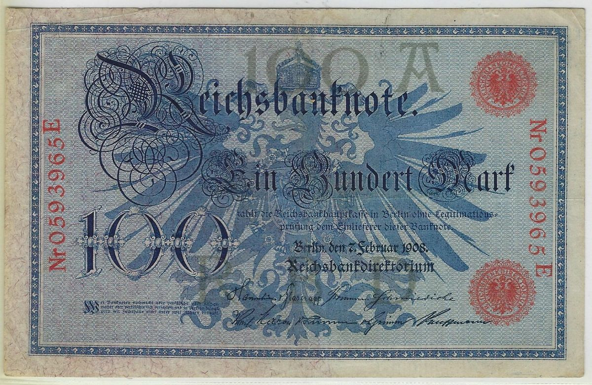 ALLEMAGNE 100 MARK 7 FEVRIER 1908 SERIE E TTB