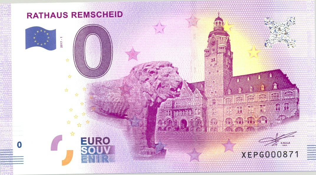 ALLEMAGNE RATHAUS REMSCHEID BIL LET SOUVENIR 0 EURO TOURISTIQUE 2017-1 NEUF