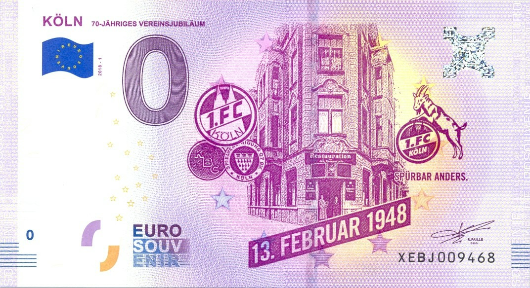 ALLEMAGNE 2018-1 KOLN 70 JAHRIGES VEREINSJUBILAUM BILLET SOUVENIR 0EURO TOURISTIQUE NEUF
