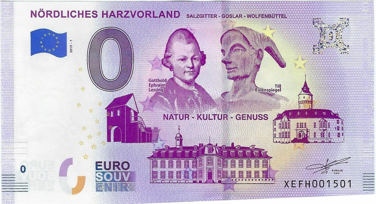ALLEMAGNE 2019-1 NORDLICHES HARZVORLAND BILLET SOUVENIR 0 EURO TOURISTIQUE NEUF