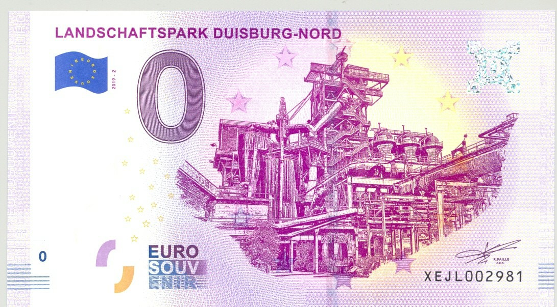 ALLEMAGNE 2019-2 LANDSCHAFTSPARK DUISBURG-NORD BILLET SOUVENIR 0 EURO TOURISTIQUE NEUF
