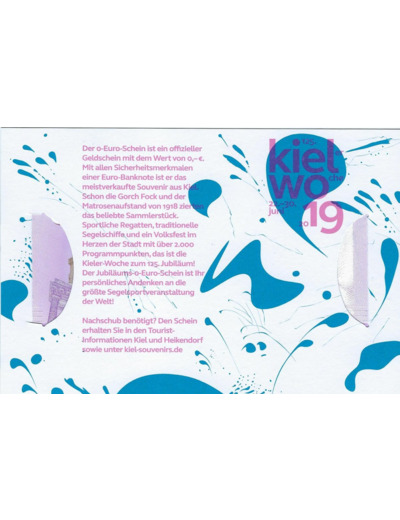 ALLEMAGNE 2019-3 125 KIELER WOCHE BILLET SOUVENIR 0 EURO TOURISTIQUE NEUF