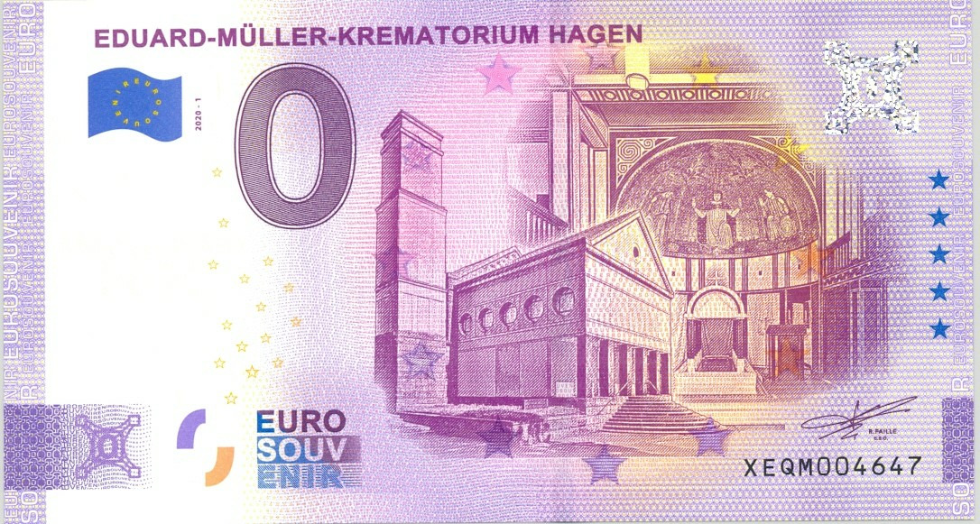 ALLEMAGNE 2020-1 EDUARD MULLER KREMATORIUM HAGEN VERSION ANNIVERSAIRE BILLET SOUVENIR 0 EURO TOURISTIQUE NEUF