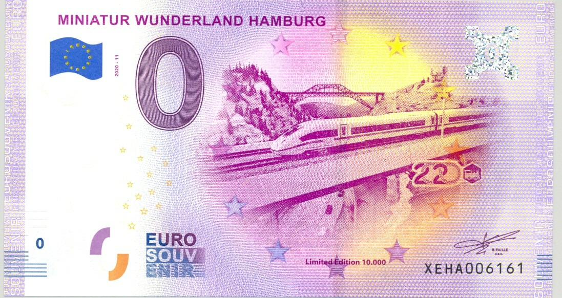 ALLEMAGNE 2020-11 MINIATUR WUNDERLAND HAMBURG BILLET SOUVENIR 0 EURO TOURISTIQUE NEUF