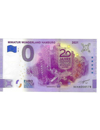ALLEMAGNE 2021-15 MINIATUR WUNDERLAND HAMBURG VERSION ANNIVERSAIRE BILLET SOUVENIR 0 EURO TOURISTIQUE NEUF