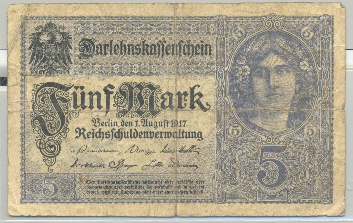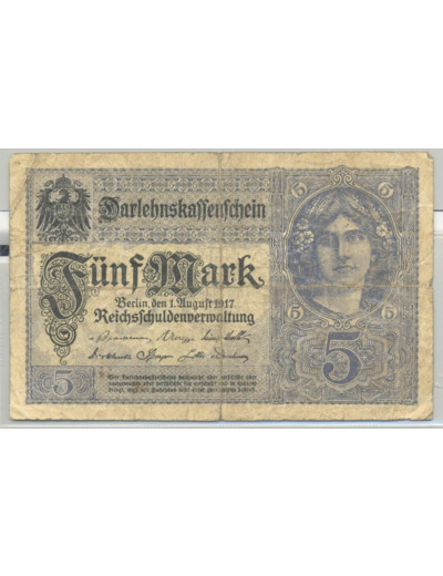 ALLEMAGNE 5 MARK 1-8-1917 SERIE X TB+