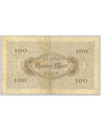 ALLEMAGNE (KOLN) 100 MARK 09-10-1922 TB+