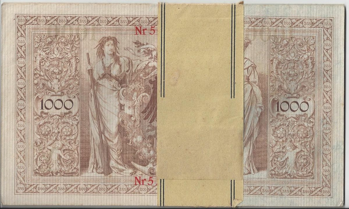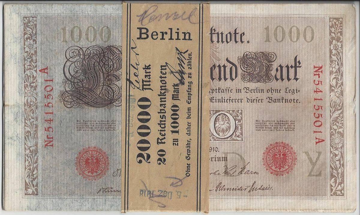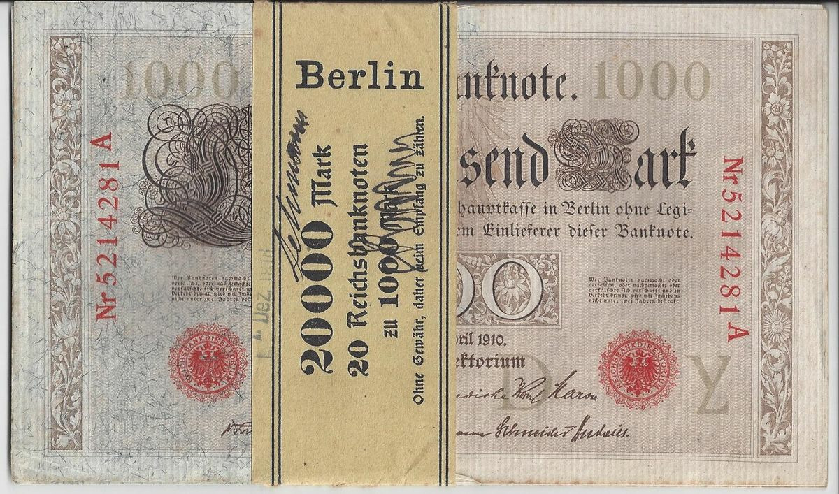 Allemagne LIASSE 20 X 1000 MARK Serie Y 21 04 1910 SUP avec sa bande datée du 05/12/1918