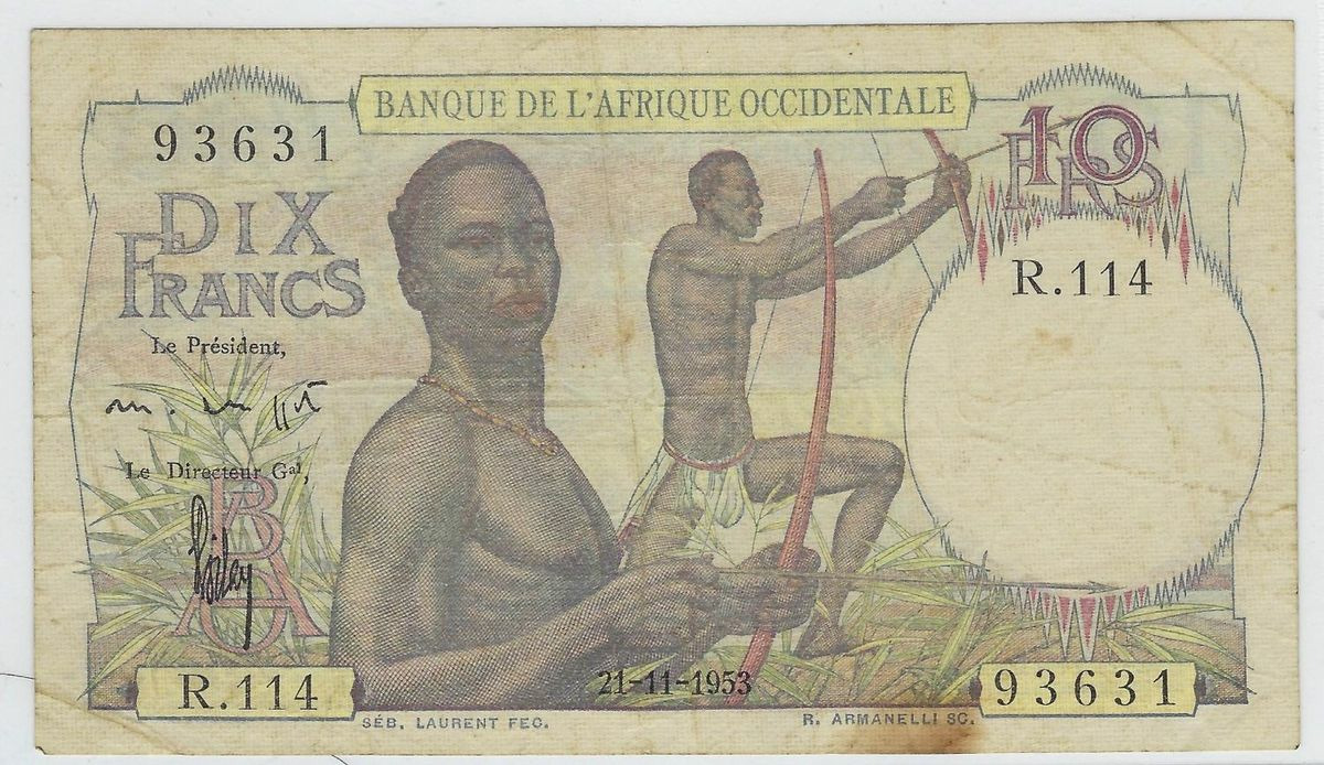 B.A.O. BANQUE DE L'AFRIQUE OCCIDENTALE 10 FRANCS 21-11-1953 SERIE R114 TB+